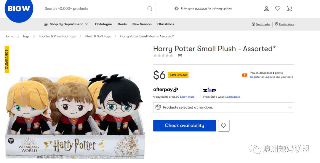 各位《哈利波特》的粉丝们注意啦!BigW正在限时清仓一众好货,从猫头鹰到小金球魁地奇,再到三位主角玩偶,最低$2.5起,赶紧冲一波: