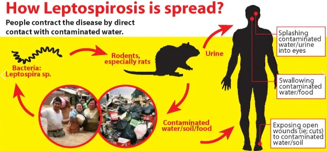 最常见的感染源是,接触受感染的动物尿液和/或受污染的土壤或水。暴雨或洪水过后可能会爆发疫情。