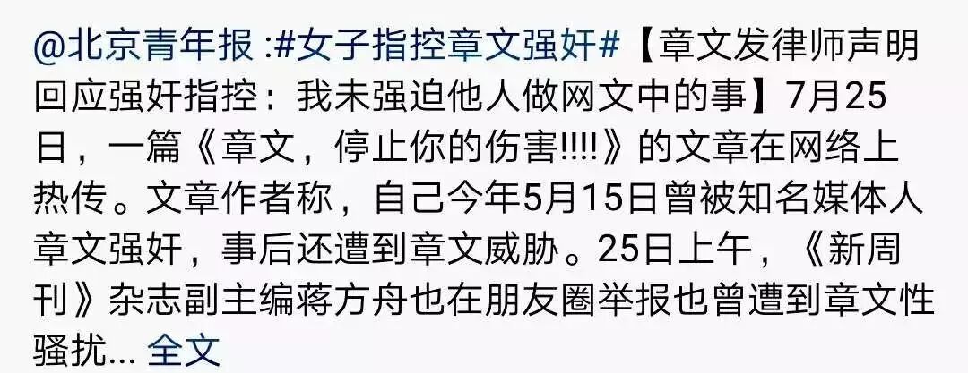 此后,网友易小荷也揭发:和章文在中国新闻周刊做同事时,曾被他摸过大腿。