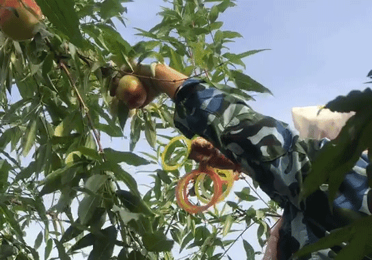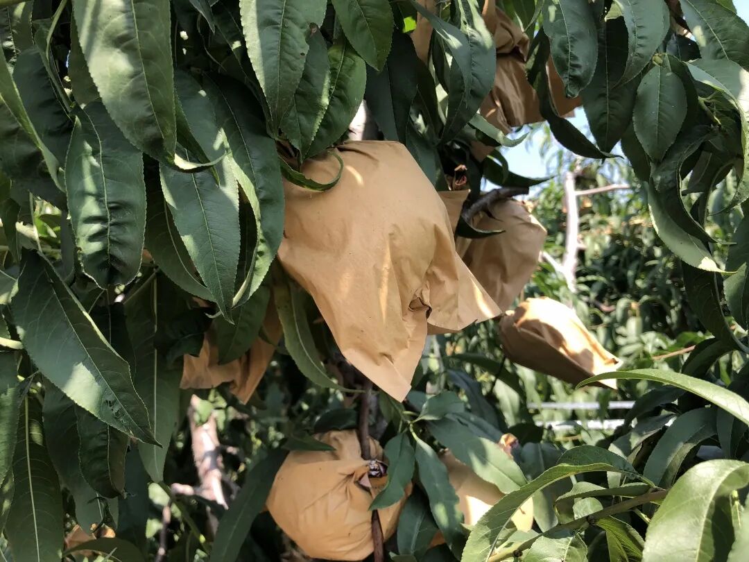 每年四月十里桃花香,等到五月桃农们就开始给所有小桃子套上保护袋。