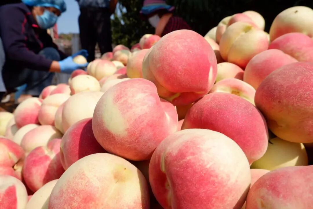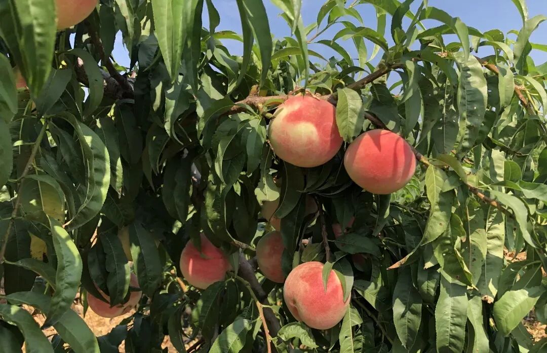 临近成熟时,桃农们会去掉套袋,让和煦的阳光给饱满的蜜桃抹上腮红,更是艳丽动人。