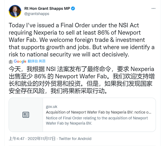 这不只是逼闻泰科技出售英国纽波特晶圆厂86%的股权,更是对闻泰科技资产的巧取豪夺。英国出此政策的法律依据是《2021国家安全与投资法案》,该法案于2022年1月4日正式生效。但闻泰科技对纽波特晶圆厂的收购早在2021年8月15日就已经完成全部手续。按照法不溯及既往原则,英国政府无权强制要求闻泰科技出售纽波特晶圆厂的任何股权。