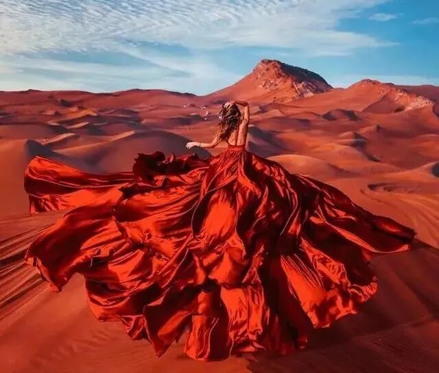 一袭红,裙裙飘拂出一位娴静美人雕像!