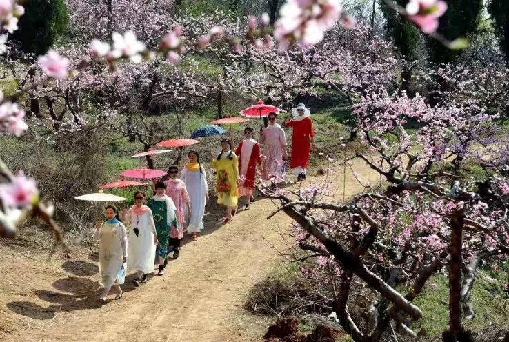 浓妆彩伞丛中流,点燃萧国万朵云。