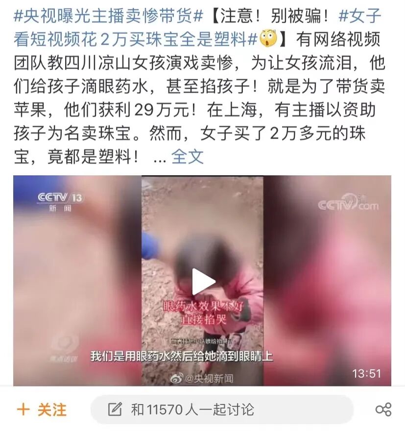 “315”国际消费者权益日即将来临,各类各样的消费问题又再度引起了大众的重视。运营社注意到,就在今年 1 月,抖音电商发布了一则《关于【内容低质画风】的专项治理公告》,表示将重点打击演戏炒作卖货、卖惨营销等行为。抖音电商之所以对此作出抵制,就是由于这些不正当的带货行为会欺骗消费者。而随着近两年「内容电商」成为电商发展趋势,越来越多的人开始通过刷视频、看直播来购物,整个电商行业的生态环境也变得逐渐复杂、多元起来。运营社发现,有不少商家和达人为了快速赚钱,动起了歪心思......01