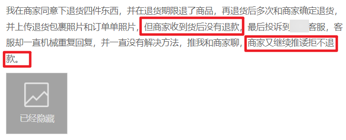 在某平台购物退货后,商家一直迟迟不退款,甚至到后面拒绝退款;联系了平台客服,也并没有给出妥善的解决方法。