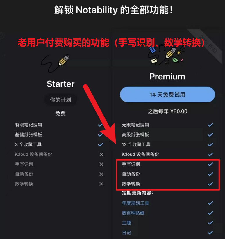 11 月 1 号,一款效率办公软件 Notability 宣布自己由「付费买断制」,改为免费下载的「订阅制」。这个看似“名不见经传”的 App 的公告一经发出,就被网友们骂上了微博热搜、知乎热榜:原因无他,改为订阅制后,老用户买断的各种功能,包括最基础的 iCloud 云盘储存与同步,都要再次缴费(100元/年)才能使用。今天,一则“ Notability 致歉”的消息更是登上了微博热搜第一,宣告着这场“订阅制拉锯战”以官方妥协而告终。那么,这个 App 到底是什么,为什么对于这次改版大家如此愤怒?为什么全球用户都在骂它“吃相难看”?作为一款手写笔记软件,Notability 常在全球各地的 App Store 效率(付费)榜位居第一。作为热门软件,它的优势包括以下几点:首先,Notability 页面干净上手快,操作简单。打开就能写、有笔就能画,记笔记的同时还支持同步录音,被“学生党”奉为网课利器。其次,除了基础的手写笔记功能,它还有很多衍生玩法,比如记账、手账、练字。这种功能和模板让它不仅成为学习办公的效率利器,还成为了电子手账绘本爱好者的阵地,被选入了「 iPad 无纸化学习必备 App 名单」中。在小红书上搜索关键词,其相关的模板配色笔记数量达到了 3w+ 。同时,Notability 还免费提供云端储存、同步等功能,支持在各个终端设备之间切换,提供五种自动备份的方式。据不完全统计,Notability 用户数已经达到了 1500w 。对于这 1500w 老用户来说,以上功能都可以用大约 60 元买断,降价时甚至只需 18 元就可以拿下。当然,用户还可以在软件中购买「高级功能」,比如「手写识别」、「数学表达式转换」等等,但买不买高级功能不影响基础版的使用。本来还有不少用户很激动,期待有更高效的新功能出现,谁知最后迎来的竟然是对原有功能的“变相阉割”。在新版本中,Notability 从之前的「买断制」变成了「订阅制」。老用户们发现,如果不花 100 元/年的价格接着订阅 Premium 版本,不但之前免费的功能无法使用,甚至单独付过费的「高级功能」(手写识别、数学表达式转化等)也都无法使用了。简单来说,就是 Notability 先向用户宣传“ 60 元买断 App 终身使用权”,吸引大家下单;在改版中,又用「阉割功能」的方式,逼已经“买断”过用户,用比买断还贵的价格「按年付费」。事实上,「用功能倒逼用户付费」这个方法,Notability 用过不止一次。曾经的 Mac 版本和 iOS 版本并不兼容,要想在 Mac 上使用 Notability ,必须再次花 25 元购买电脑版本。然而在 M1 Mac 发布后,Notability 下架了原有的版本,宣布只要在 iOS 端付费下载过软件,就可以免费使用 Mac 版本。针对于这波下架,官方对于曾经付费购买的 Mac 版本的用户没有任何补偿, 之前为「版本兼容」付过费的用户,相当于花了新用户 2 倍的价格购买同一软件。昨天,还有外国网友发现, 官博大量删除了 Notability 用户对产品的负面评价。虽然这些评论现已恢复,但是在今天 Notability 最新发的道歉信评论区,还是有网友表示对昨天删评论的愤怒。Notability 为什么会突然选择改变付费制度,从买断制变为订阅制?背后有什么考量呢?原因很简单:它已经来到了用户增长和付费的「瓶颈期」。Notability 的收费模式最开始采用的是买断制,即用户在使用产品之前就需要为其付费,一次性买断产品终身的服务和功能。过去,由于精准切中了对笔记类产品需求强烈的用户(学生、教师、绘画创类专业人员等)的需求,Notability 基本是靠着「口碑营销」做增长,即凭借着过硬的产品实力,让用户们自发相互推荐,为产品积累了 1500w 精准用户。但,从用户增长的角度看,当精准用户覆盖率达到一定程度后,用户增量将无可避免地进入「瓶颈期」。怎么“拓圈”呢?当然是降低使用门槛,让更多用户能感受到这个软件的 Aha Moment。从这个角度来看,无论是早期 60 元上下还是打折时期的 25 元,这个价格始终是阻碍新用户下载的第一道门槛。用户想要感知到 Aha Moment,只有通过其他网站视频等方式,但这离用户亲自上手使用软件还是有一定距离。所以,Notability 想通过「免费下载-14天试用-续订」的模式来吸引更多的用户,实属正常。另外,可以预见的是,Notability 母公司的经营状况可能真的“不太乐观”。在此次引发大规模的用户负评后,Notability 官方开始“哭穷”,向用户解释“我们真的不容易”:我们未来开发的功能也可能包括在内,但具体取决于功能的复杂性和维护成本。