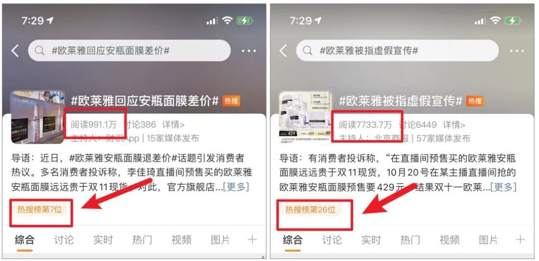昨天,一则#欧莱雅被指虚假宣传 的消息登上了微博热搜前三。