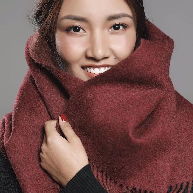 【绛红之红】100%牦牛绒双色双面围巾