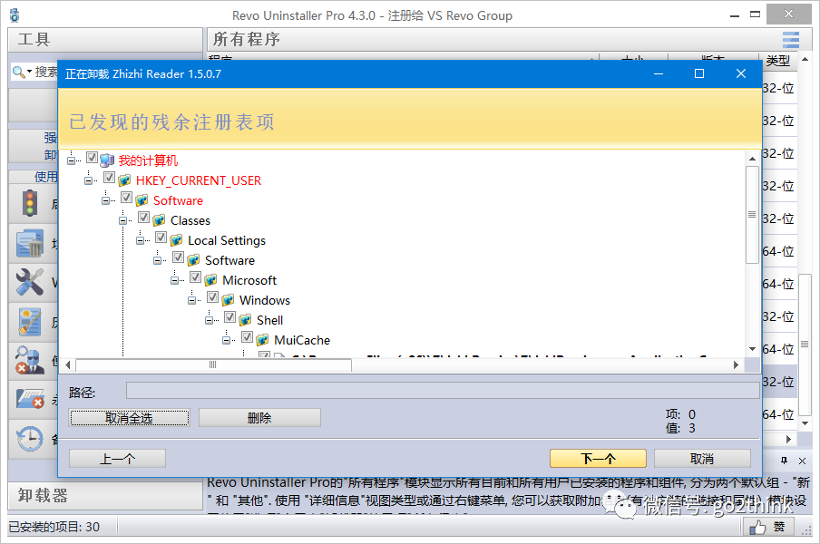 支持软件和 UWP 应用的卸载,查看软件注册表和安装目录等。