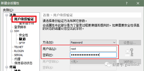 点击 “用户身份验证”,输入用户名(默认 root)和密码。确认。