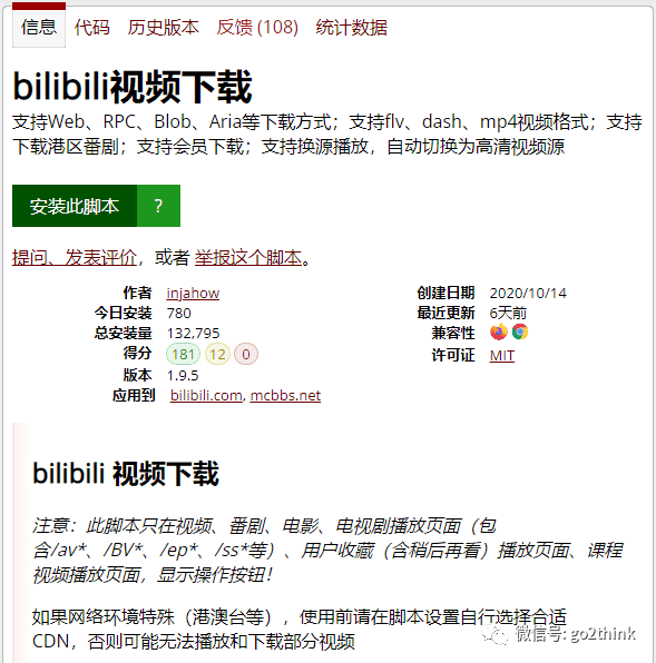 脚本地址:https://greasyfork.org/zh-CN/scripts/413228-bilibili视频下载