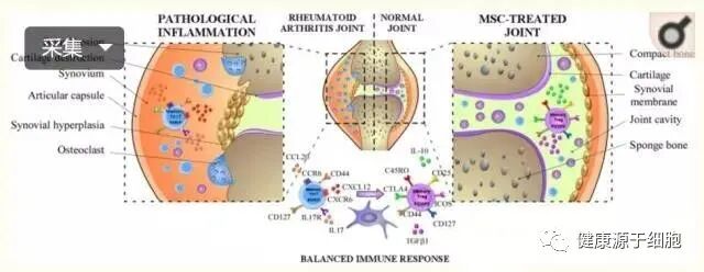 还有2014年12月至2015年11月收治用改善病情抗风湿药(DMARDs) 治疗无效的难治性RA住院患者4例, 给予患者间充质干细胞静脉滴注1次, 细胞数为1×106个/kg。回输治疗后3名患者关节肿胀压痛数、血沉及DAS28 (4) 明显改善, 另1名患者无效。所有患者均未发生过敏、排斥及其他严重不良反应, 血常规肝肾功无异常变化。结论间充质干细胞滴注治疗RA安全性良好, 能在一定程度上改善部分难治性RA患者的病情。间充质干细胞应用于自身免疫性疾病的治疗是近年来发展起来的新方法,具有以下优点:①间充质干细胞激活后可修复、替代受损害的细胞和组织,间充质干细胞具有多向组织分化潜能,植入宿主体内后可在特定部位的微环境影响下向正确表型的细胞分化;②间充质干细胞可分化为免疫细胞来治疗、 修复免疫系统, 具有显著的免疫调节功能;③间充质干细胞与 T 淋巴细胞之间的接触可以增强其抑制作用;④间充质干细胞激活后分泌多种细胞因子,可以阻抑炎性细胞介质,减少骨关节、滑膜破坏,有效地控制病情的进展;⑤间充质干细胞的治疗无排异反应,无医学伦理争议,安全可靠,疗效确切。间充质干细胞治疗类风湿关节炎是目前最持续有效和最彻底的治疗方法,可改善患者体内环境、调节免疫功能,激活受损及休眠的细胞。在体内能够正常生长、增殖、修复损伤,阻止关节结构进一步破坏,抑制异常的机体免疫功能,遏制并发症的发展,从而恢复机体的正常功能。临床案例1:发表在《Clin Rheumatol》的文献显示,4名对DMARDs且至少有一种抗肿瘤坏死因子-α制剂耐药的患者接受间充质干细胞滴注治疗,随访发现患者关节临床症状改善明显,且安全有效,无不良反应发生。临床案例2:据《Stem Cells》期刊报道,在一项床治疗中,科研人员对患者进行膝关节内注射间充质干细胞,干细胞发挥修复透明软骨的作用,减少了MRI确定的软骨缺损,并且改善了患者膝关节的功能和疼痛,无并发症发生。临床案例3:近期,《Stem Cell Reviews and Reports》发布干细胞治疗类风湿性关节炎的最新治疗成果,科研人员检索和回顾了类风湿关节炎患者经间充质干细胞(MSC)移植的随机或非随机临床治疗,共纳入了4项临床治疗,其中有2项来自中国。治疗结果显示,参与治疗的类风湿关节炎患者经MSC干预后症状改善明显,由于干细胞的抗炎、免疫调节和免疫耐受诱导的特性,干细胞的移植安全有效。 2020年4月10日,北京贝来生物科技有限公司人脐带间充质干细胞注射液新药正式获批临床,用于治疗类风湿关节炎。