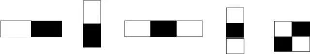 出于性能考虑,弱分类器使用了简单的Haar-like特征,这种特征源自于小波分析中的Haar小波变换,Haar小波是最简单的小波函数,用于对信号进行均值、细节分解。这里的Haar-like特征定义为图像中相邻矩形区域像素之和的差值。下图是基本Haar-like特征的示意图: