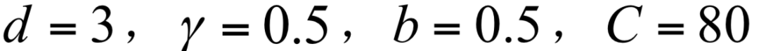 接下来选用多项式核。首先将参数设置为: