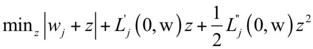其中向量e的第j个分量为1,其他分量全为0。上式中最后一步对函数用二阶泰勒展开近似代替。上面子问题的求解采用牛顿法。求解整个问题的坐标下降法流程为(这里只列出了和牛顿法相关的步骤):
