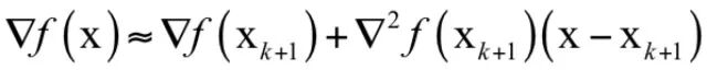 忽略二次及以上的项,并对上式两边同时求梯度,得到函数的导数(梯度向量)为: