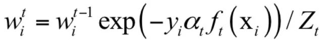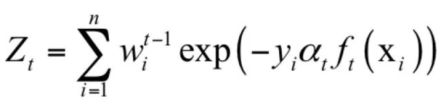 其中Zt为归一化因子,它是所有样本的权重之和: