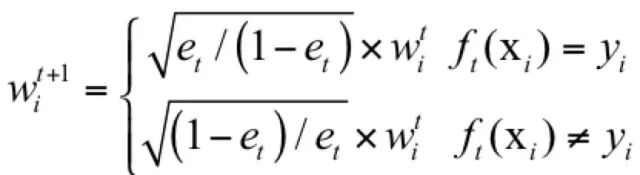 关注之前被错分的样本,准确率高的弱分类器有更大的权重。
