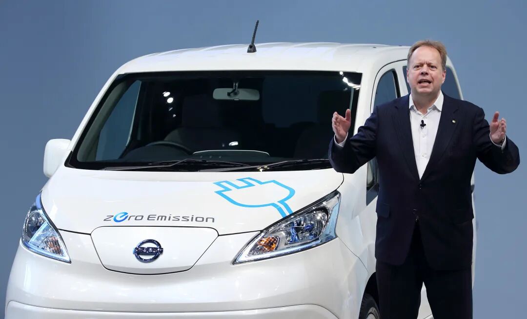 当地时间2014年6月9日,日本横滨,日产汽车副总裁安迪·帕尔默与Takao Katagiri发布e-NV200电动轻型商用车