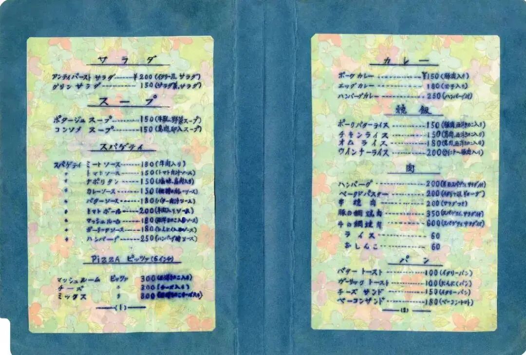萨莉亚1967年的一部分菜单,不仅有西餐,也有一些日式菜品 / 萨莉亚官网