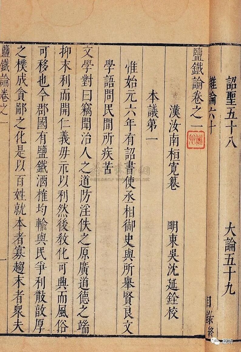 儒生和史官对桑弘羊的鄙视,使我们损失了许多重要的史料。幸运的是,还有一部宝贵的汉朝财政政策会议记录,比较细致地保存了桑弘羊的经济理念和思想——这就是《盐铁论》。《盐铁论》记录的是公元前81年2月,中央官员桑弘羊和地方举荐的学者官员,即“贤良、文学”之间,对当时财政政策的争论。其时已经是汉武帝之子汉昭帝统治的时期,但汉武帝时代的财政政策基本被保留下来。从这部会议记录中,我们可以看到汉武帝—桑弘羊时代对“发展工商业”的主张和支持,究竟是什么样子的。