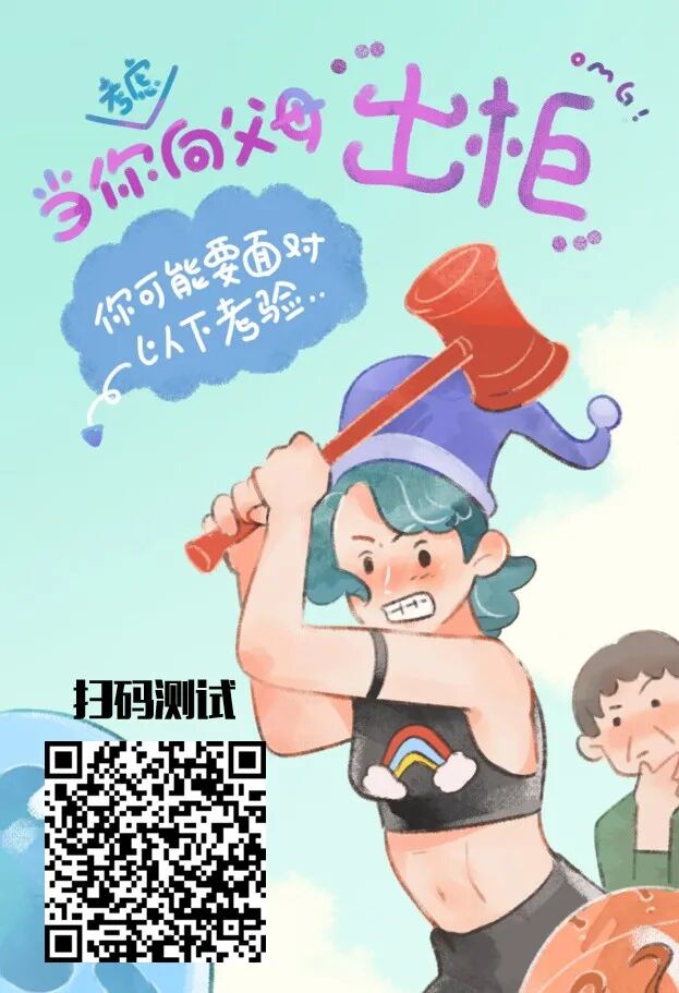 除此之外,2021年,我们还玩了不少原创的花样!例如上线彩虹老娘舅《亲密关系调解室》视频,开发了“出柜测评”H5小游戏……