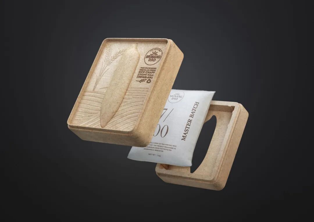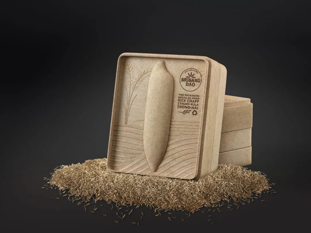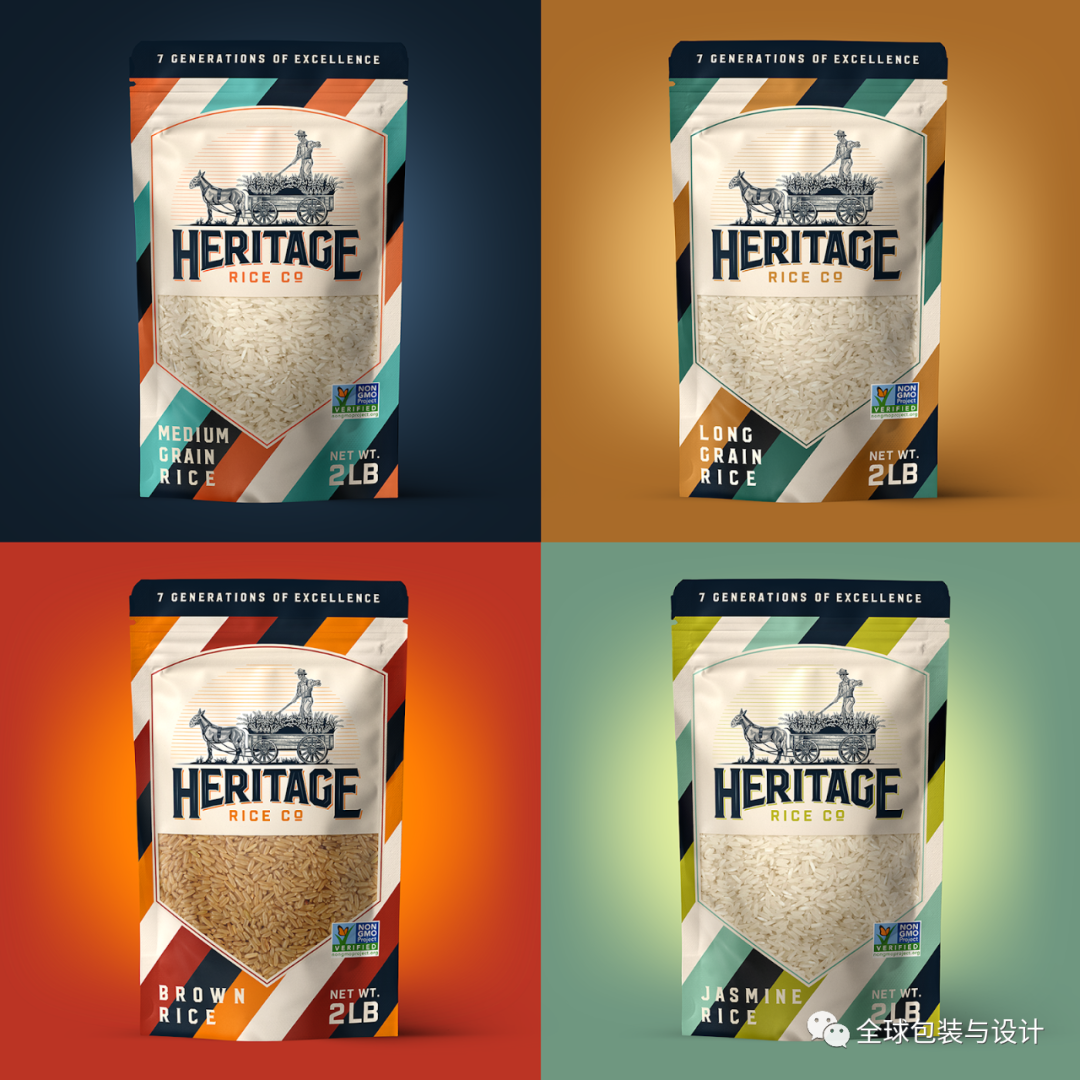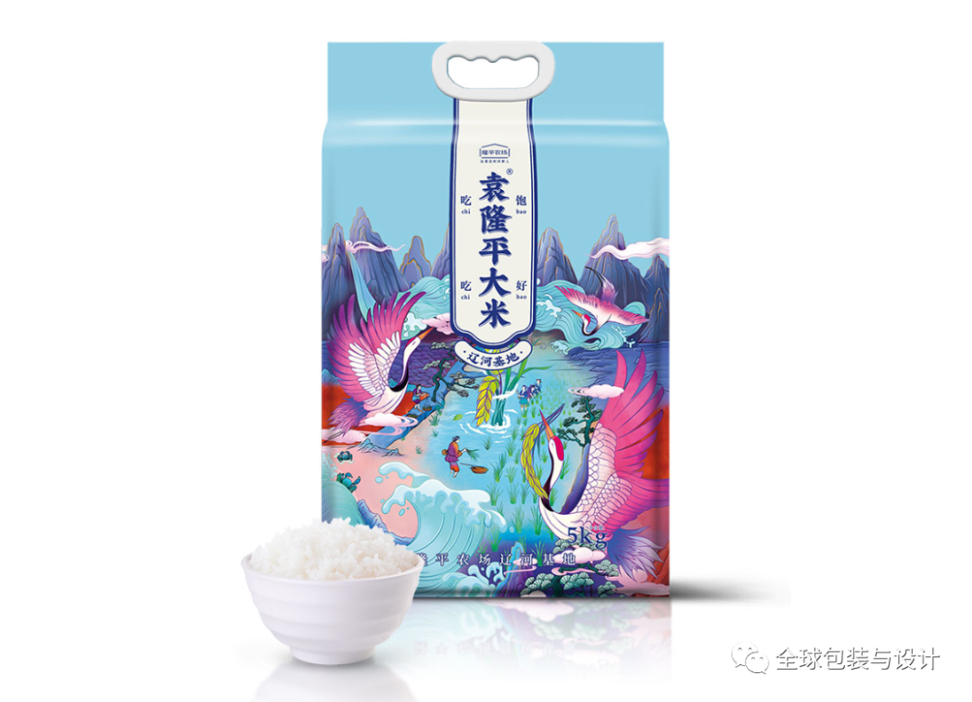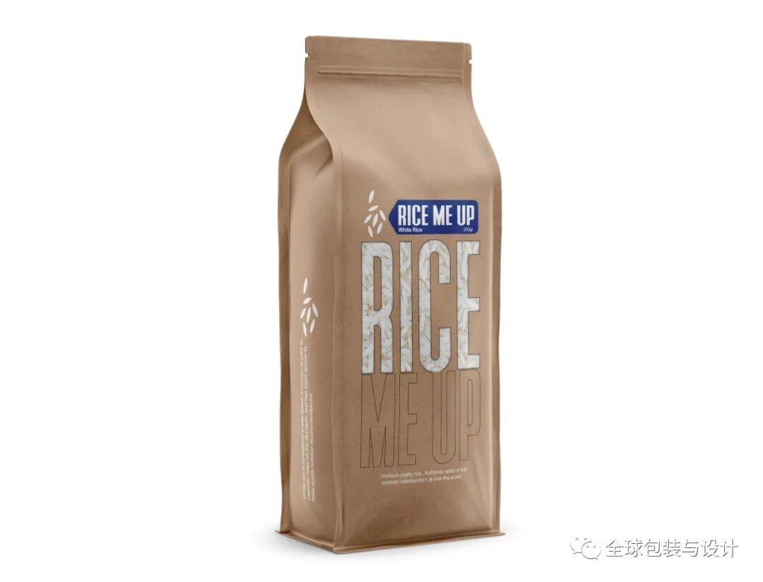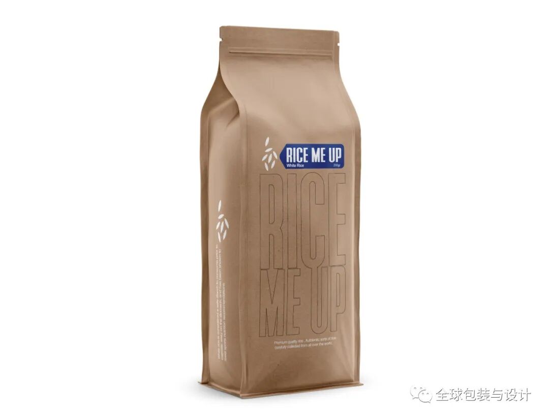这种设计只有3种颜色:绿色、白色和黑色。产品的图像、内容和条形码为黑白两色,描绘稻谷无限绿色的高频绿色。