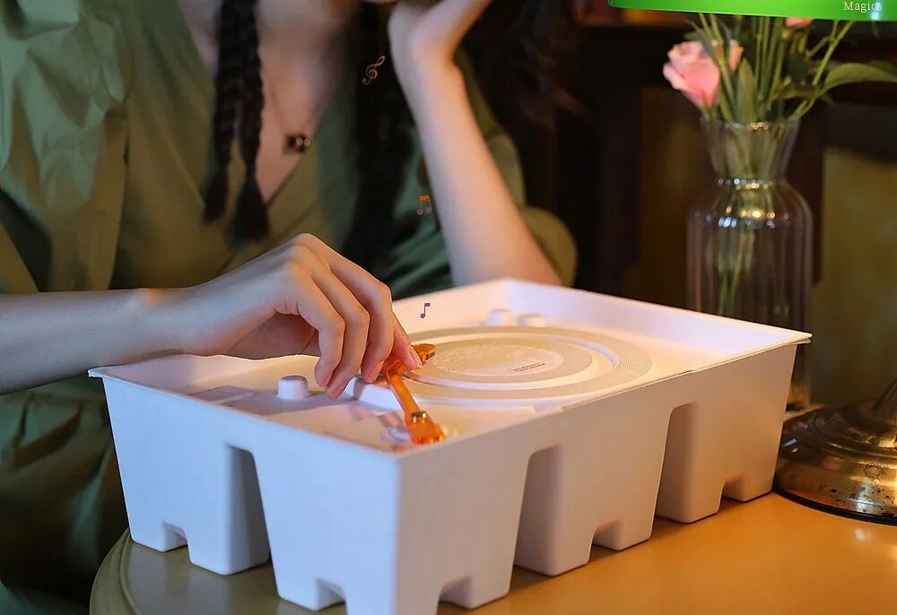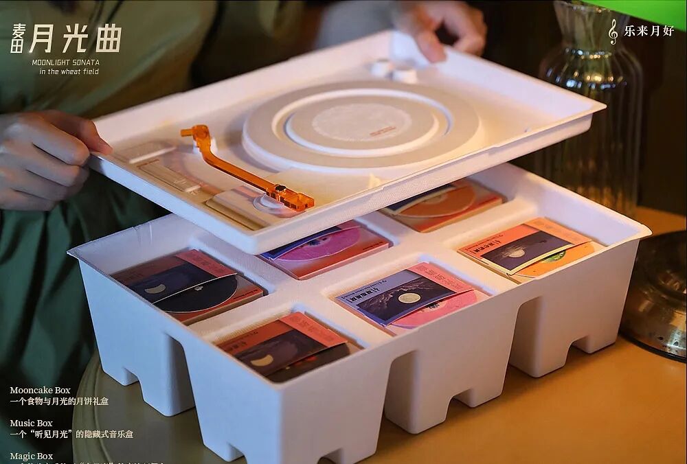 这款麦田月光曲中秋月饼礼盒,是一款黑胶唱片机风格的月饼,礼盒使用环保材质,有可以种植的纸质种子,用完之后还能做花盆,种一些小花。