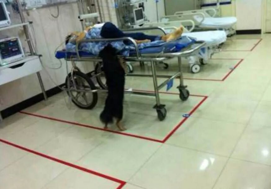 她的狗狗一路狂奔,跟着救护车追来。