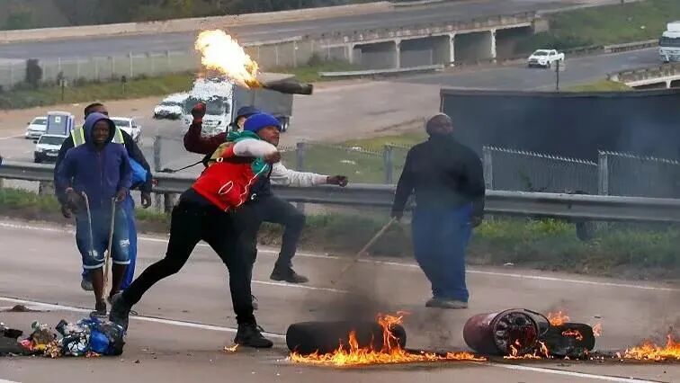 这次就是他的支持者借祖马入狱的机会,相继在南非夸祖鲁·纳塔尔省、豪登省等多地发起抗议活动。但是这些抗议活动,迅速演变成南非历史上最大规模骚乱,造成了大量人员伤亡和财产损失事件。包括首都约翰内斯堡、德班和彼得马里茨堡市恍如战场。城市道路被阻隔,所有车辆被掀翻,到处是纵火和抢劫的人,所有商铺被洗劫一空后砸成废墟。![]()