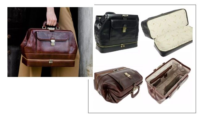 传统的「Doctor Bag」又叫「Medical Bag」,中文译作「医生包」,顾名思义,是医生出诊时所用的包。因为出诊时医生需要用到许多医务用品,为了拿取方便,医生包就设计成了开口较大、底部较宽、内部分隔多的款式。