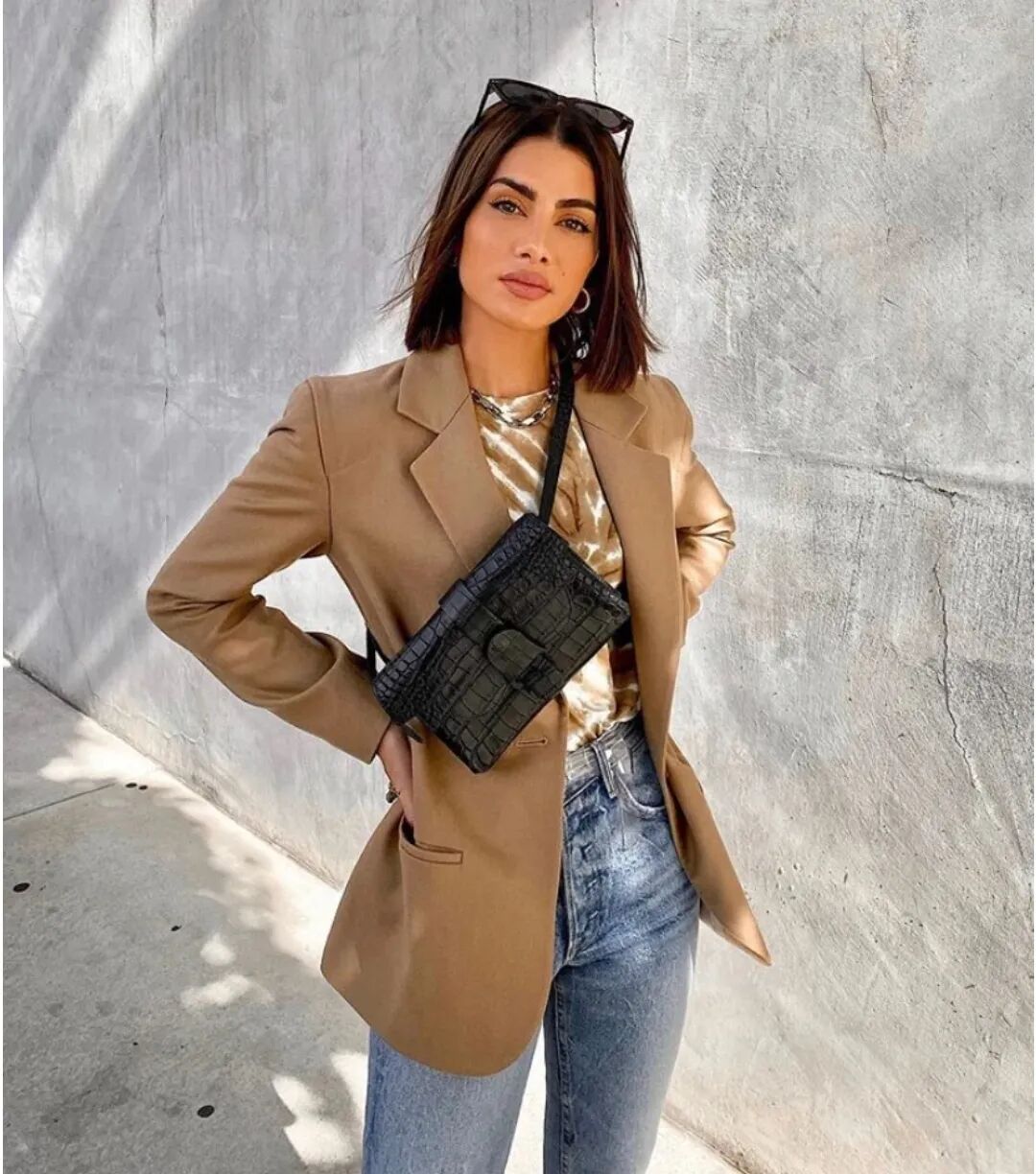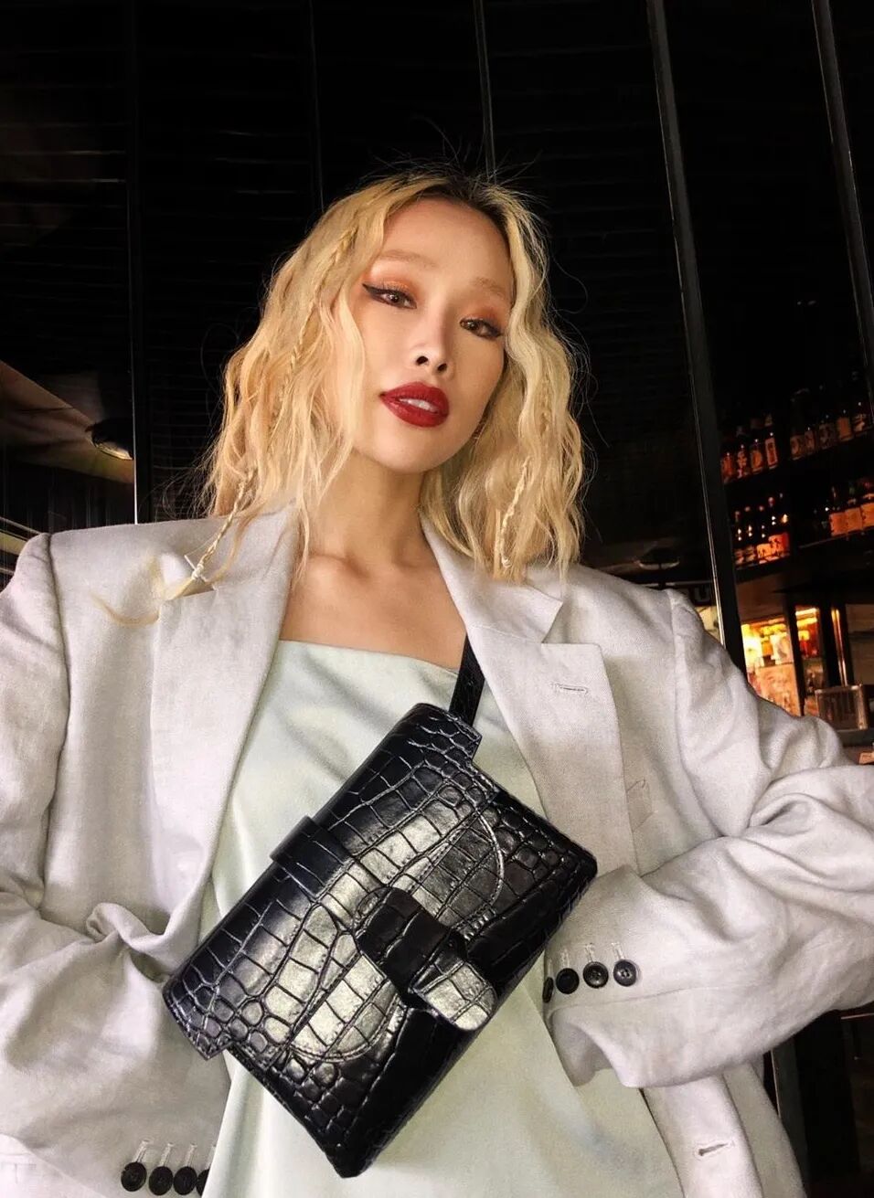 如果你中意干练的西装外套look,不妨选择经典黑色龙纹皮Aria腰包。随性洒脱的腰包能够平衡西装的正式感,而龙纹的华丽也可为简约的西装增添时髦度~