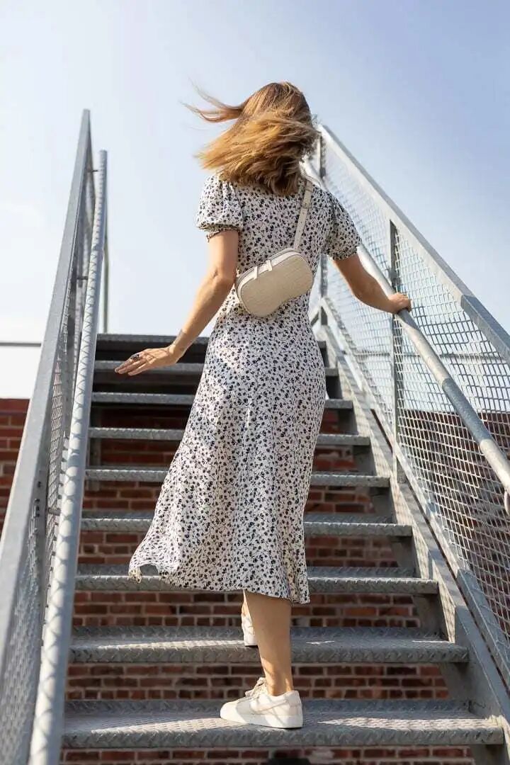 清新田园风的SENREVE Girls ,可以尝试奶油色龙纹皮Coda 腰包与碎花裙的完美搭配~ 随意斜挎在胸前或身后的Coda,给整个look注入了满满活力;龙纹的高级复古结合碎花的清新甜美,可甜可盐~