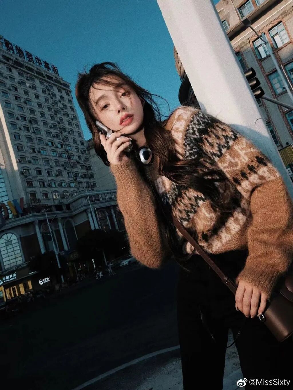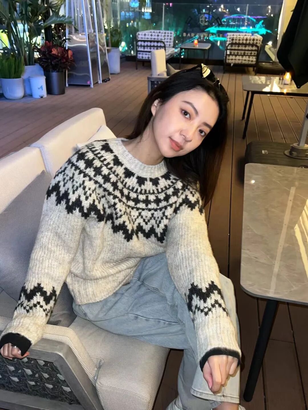 COCO上身演绎的时候,室外气温大概是6度左右,内搭上一件薄薄的针织完全能抵御寒风的侵袭,而且因为图案聚焦在肩部+微微收腰的设计,通过视觉重心上移的方法让平时看起来比较厚重的毛衣显得柔美不少,所以一点都不显臃肿,现在还有货可冲!
