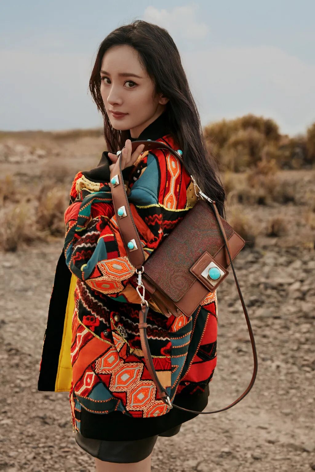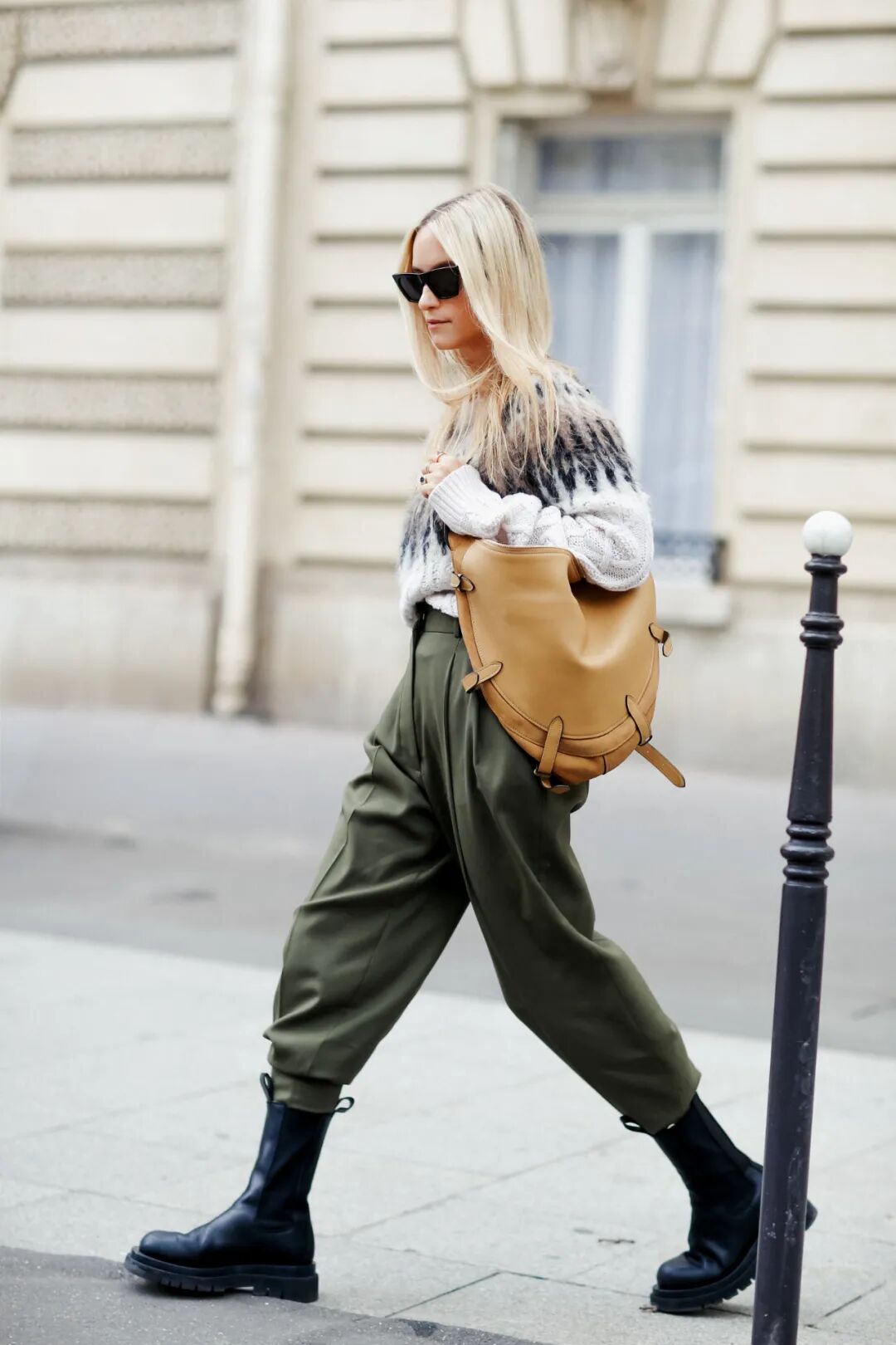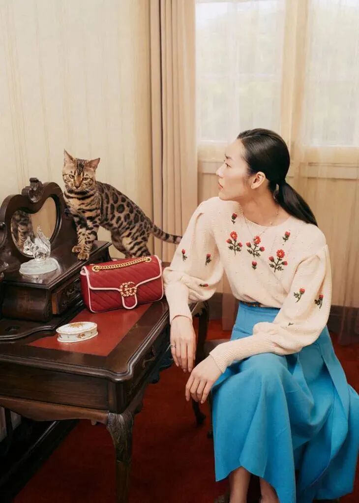 大面积图案出现时,很多姐妹会担心杂乱的色系显得不干净利落。对于这种色彩繁多,图案复杂的单品,一条干净利落的长裤就能穿出中性气质,如果用腰带点缀还能巧妙塑造高腰线,加以贝雷帽、邮差包等装饰复古氛围更浓郁。