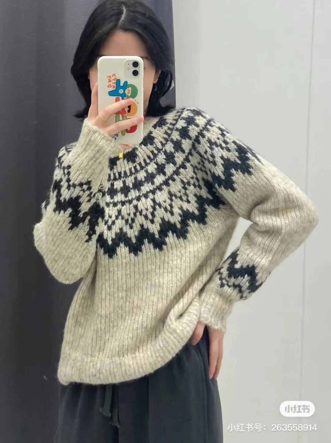 买不到合作款的也别着急!优衣库还有一款粗针印花圆领针织衫也备受大家喜爱,米白色调混上灰色,微微落肩的版型+胯部以上的长度,一点都不压个字,某书上已被刷屏。