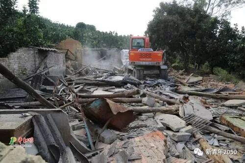 连续五天, 福建坂仔镇联合县环保局、镇村建站、派出所、国土所、镇村干部20多人冒着高温天气再出“重拳”拆除该镇八个村庄,4300平米猪圈。