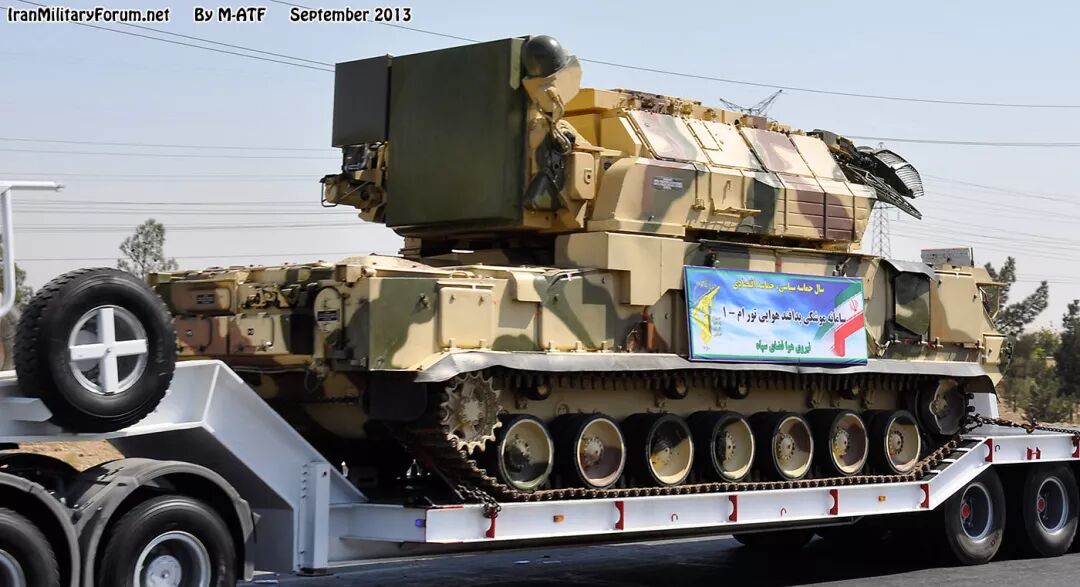 2005年11月,伊朗与俄罗斯签订价值7亿美元的合同,购买了29辆“TOR-M1”防空导弹发射车。每辆发射车是雷达与导弹合一,可载8枚导弹。导弹是垂直发射的。![]()