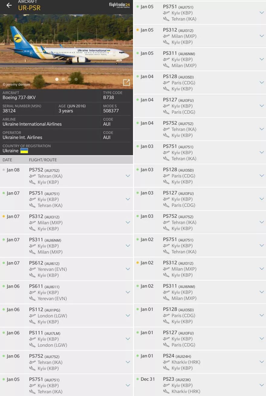 定检前后,这架都在正常飞行,执行商业航班任务,前序航班便是基辅-德黑兰,19:50-01:05正常完成,意指不可能是严重机械故障。![]()