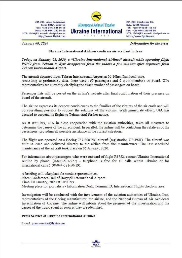 82名伊朗人(多为假期结束返回乌克兰大学上课的留学生,东正教圣诞节为1月7日,寒假一般为新年前-东正圣诞,10~15天)63名加拿大人(据说多为伊朗裔,在圣诞-元旦假期回国探亲后,从基辅转机回加拿大。)![]()