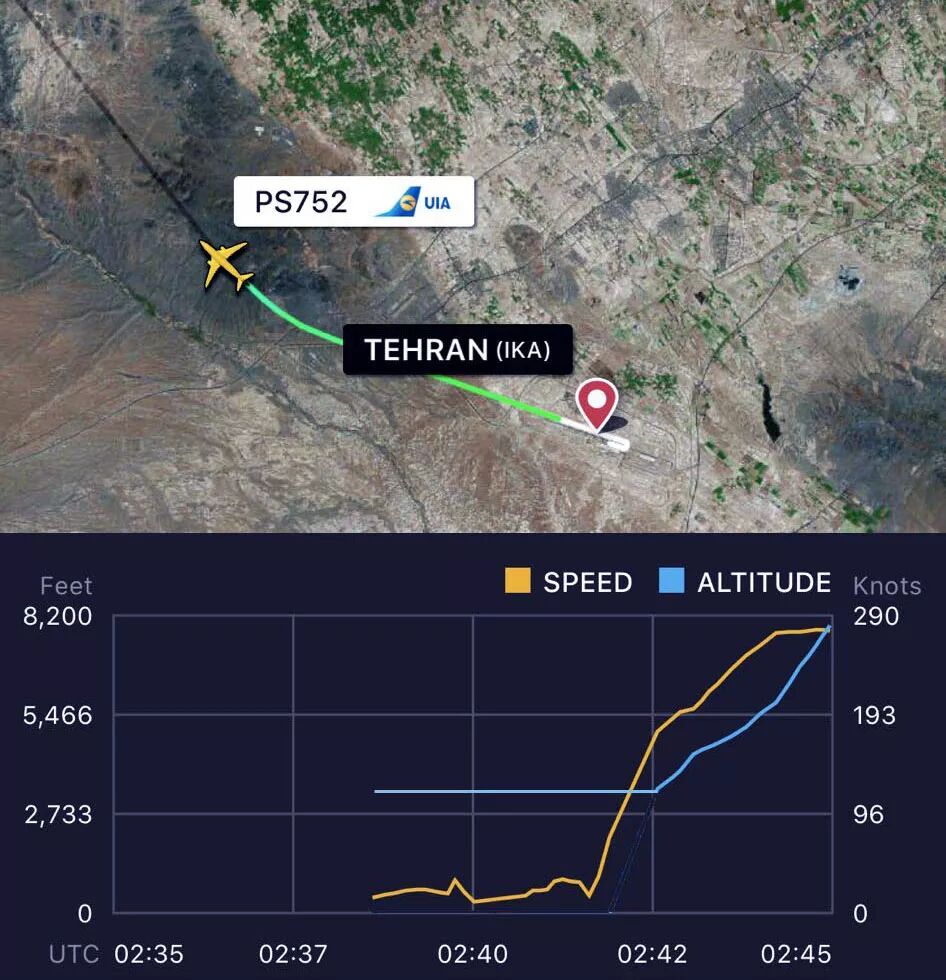就在全球还在惊讶于伊朗反击的同时。又有一架乌克兰国际航空的PS752航班(德黑兰-基辅)在德黑兰起飞后,仅仅3分钟后就信号中断坠毁。