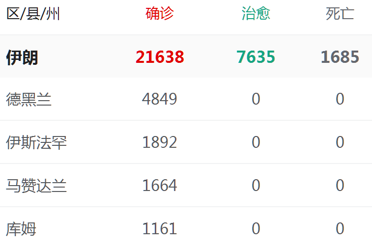 伊朗虽然声称已有7635人治愈,比例高达1/3。但目前的动态病亡率也达到7.8%,总数1685人。