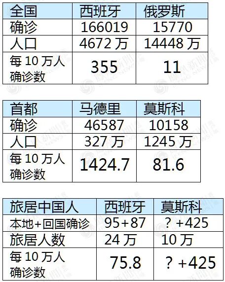 2、参考检测扎实、规模也较大的西班牙,通过在俄华人归国确诊比例推算,全俄数字应该在6-15万规模。