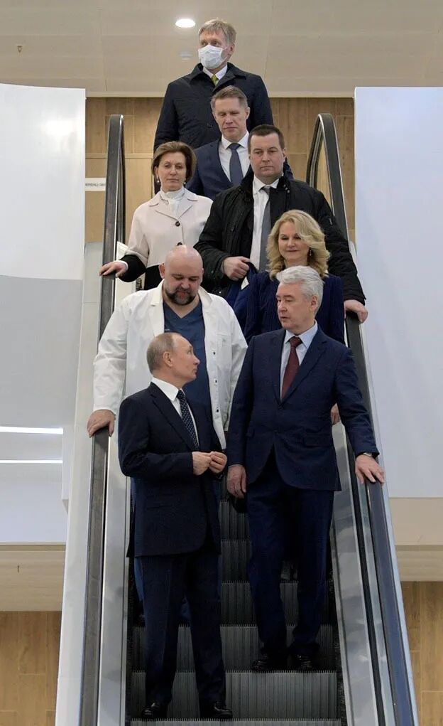 3月17日,俄确诊病例114例,突破百例关口,其中10例属于国内传播。俄罗斯当即宣布,全境所有中小学校停课,全面取消大型公众活动,原则上禁止所有外国人入境,有条件的机关和企业推动远程办公。当时给人的感觉,这些措施几乎与中国一样迅速,甚至令人吃惊。然而,之后俄罗斯的节奏又慢了下来。3月24日,普京视察了莫斯科两家新冠定点医院之一的第40传染病医院,还穿上了防护服进入病室,探望治疗的病人。但在之前之后与医生的交谈中,普京和医护人员们都没有戴口罩。当时就已经让很多网民嘀咕议论。当时陪同视察的还有俄政府副总理戈利科娃、莫斯科市长索比亚宁、卫生部长穆拉舒科、总防疫师波波娃等人,但唯有总统新闻发言人佩斯科夫戴了口罩。▎电梯上的前后排序:普京、莫斯科市长索比亚宁、第40医院医生普罗岑科、副总理戈利科娃、普京保镖、总防疫师波波娃、卫生部长穆拉什科、总统新闻秘书佩斯科夫果不其然,7天之后,3月31日,当时负责汇报介绍的医院首席医生丹尼斯·尼古拉耶维奇·普罗岑科,确诊查出新冠阳性,很快还进了监护室。▎4月9日,正在隔离治疗的莫斯科州立第40传染病院首席医生普罗岑科,但近日已康复消息一传出,就和英国首相鲍里斯确诊一样,举世哗然。整个俄罗斯的卫生防疫指挥高层差点全部中招啊!普京和当时陪同的俄防疫政要一样,全都被迫隔离起来。干脆捎带上其他政要,也一起远程办公算了。总的来说,俄罗斯的初期防御介于东方式的严谨、雷厉风行,与西方式的随意、漫不经心之间。3月17日,俄罗斯就开始传闻莫斯科要“封城”,很多公众人物和医生联名发出公开信,希望全国进入隔离状态。但莫斯科先是拖了7天才开始全面检测,又整整拖了10来天,才在3月28日宣布,全国进入一个月的自我隔离期,给两天准备时间,实际从3月30日开始。![]()