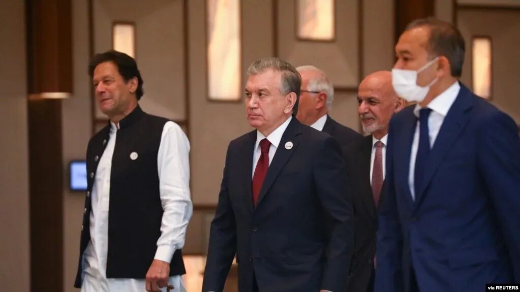 ▎2021年7月6日,巴基斯坦总理伊姆兰·汗(左一)与乌兹别克斯坦总统(中)和其身后的阿富汗前总统阿什拉夫·加尼共同参加在乌兹别克斯坦首都塔什干举行的一次国际会议