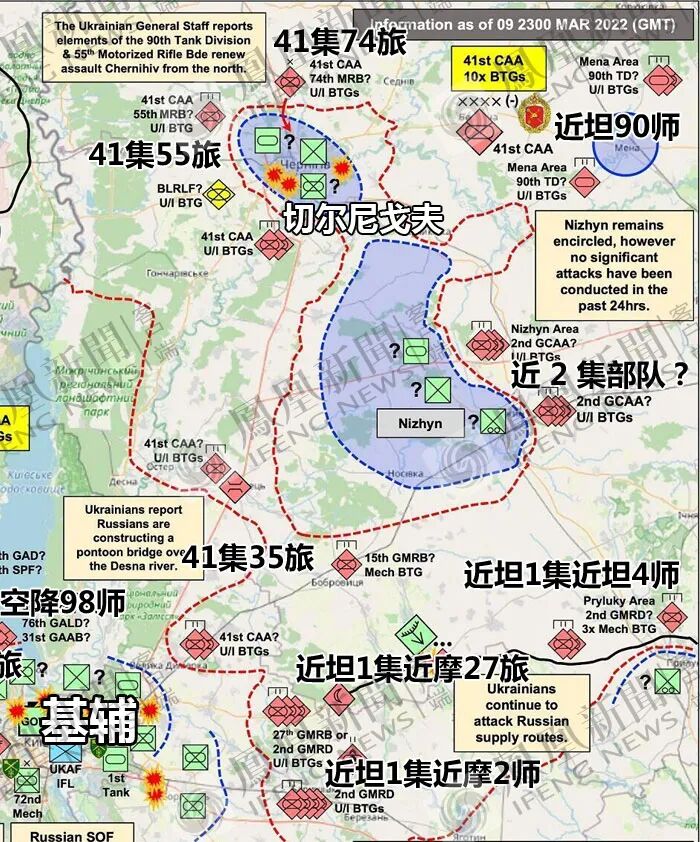 在基辅的第聂伯河以东、东北方向,俄军中部军区的第41集团军(新西伯利亚)从白俄罗斯的戈梅利向切尔尼戈夫(28万人口)发起攻击。