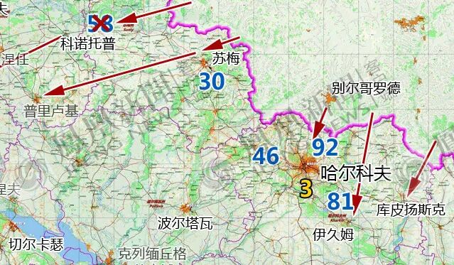 由于乌克兰首都基辅距离白俄罗斯边境仅100多公里,俄军以白俄罗斯为基地,分为西北(基辅州)、东北(切尔尼戈夫州)发起进攻。
