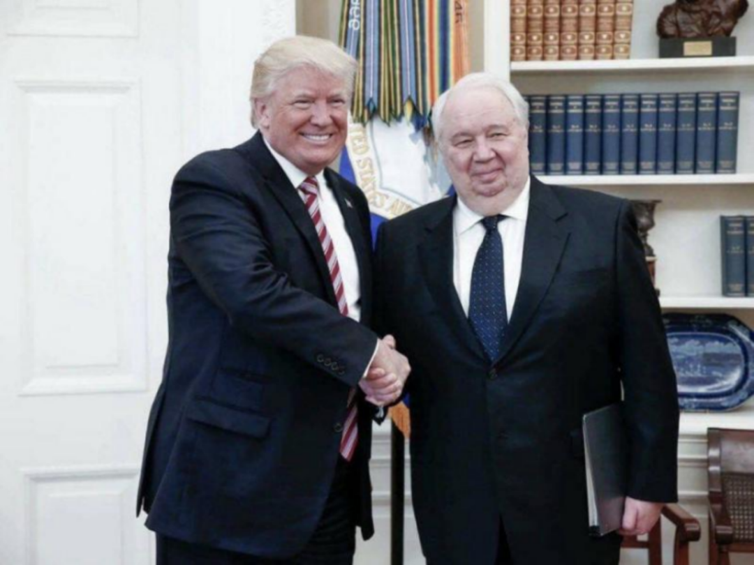 当时俄罗斯驻美国大使谢尔盖·基斯利亚克因为深度参与了特朗普臭名昭著的“通俄门”,显然已经成为希拉里眼中钉肉中刺。预计到希拉里上台之后,必定与俄罗斯交恶,克林姆林宫只得把已经干了八年多的基斯利亚克召回。但是换谁去则成了一个大问题。▎唐纳德·特朗普总统会见了俄罗斯大使谢尔盖·基斯利亚克。图源:俄罗斯大使馆