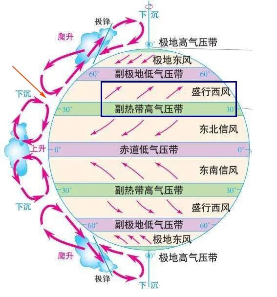 赤道热带的上升气流,旋转到这里,变为下沉气流,因而属于高气压带。所以叫“副热带高压”。